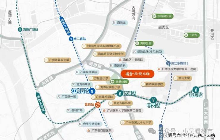 项目距离8号线晓港站约700米,步行过去大概11分钟左右,乘坐8号线可直达老荔湾、琶洲、客村等地,也可1个站到昌岗换乘2号线,到南站和越秀等都也很方便,3站到客村换乘3号线可达珠江新城等商圈。