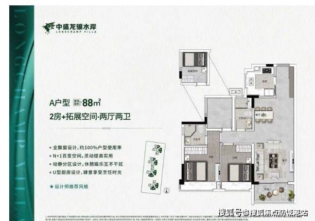 项目主打建面约88-118平方米的三四房户型,所有户型均做到100%使用率,具体亮点如下: