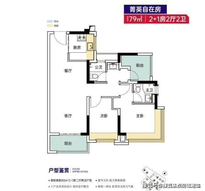 相较于 69㎡户型,79㎡的 2 + 1 房在空间上更为宽敞。客厅与餐厅的一体化设计,使公共活动区域更加阔绰,无论是家庭聚会还是朋友来访,都能轻松容纳。多出的一房同样具备灵活性,可根据家庭生活阶段的变化进行调整。卧室空间充足,能保证居住的舒适度。双阳台设计增加了采光与通风,同时也提供了更多的生活场景可能性,一边可用于晾晒衣物,另一边可打造为休闲观景空间。整体户型布局合理,空间利用率高,能为居住者带来舒适便捷的生活体验。
