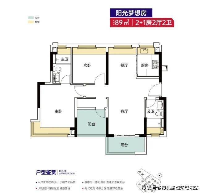 89㎡的 2 + 1 房户型进一步优化了空间布局,在保证居住舒适度的同时,展现出更强的功能性。客厅空间开阔,连接观景阳台,不仅增加采光,还能让居住者欣赏窗外美景。多出的一房可改造成独立的书房,满足在家办公或学习的需求,也可作为儿童游乐室,为孩子提供专属空间。主卧套房设计,配备独立卫生间,保障主人的生活私密性。整体户型动静分区合理,休息区安静舒适,活动区热闹便捷,超九成的使用率让空间得到充分发挥,为家庭生活提供了更多可能。