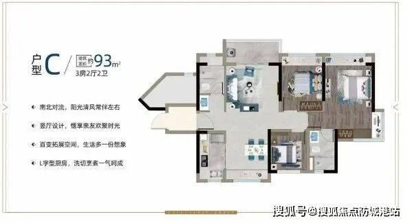 93㎡三房:宽敞明亮,带来更好的居住体验。