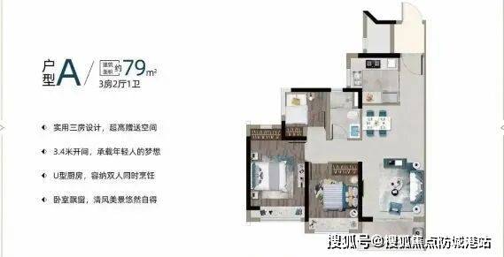 79㎡三房:紧凑实用,适合小家庭或首次置业者。