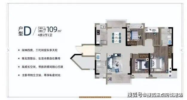 109㎡四房:适合追求更大居住空间的家庭,设计贴心周到。