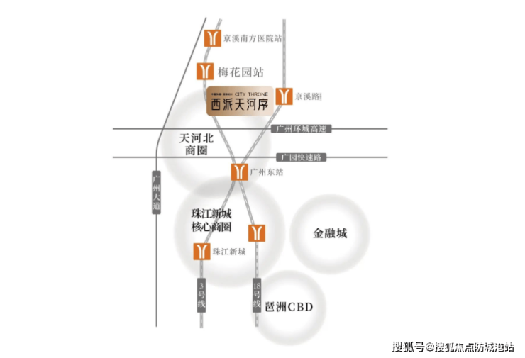 项目位于广州天河梅花园片区,地处广州中轴线的黄金段,交通资源优越,周边路网发达。直线距离地铁3号线梅花园站仅约200米,步行即可换乘,快速连通珠江新城、天河体育中心、广州东站等核心板块。地面交通方面,项目靠近广州大道、环城高速等主要干线,车行通勤无缝衔接全城。