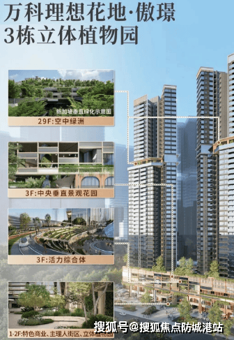 傲璟打造了一个立体垂直植物园社区,1-2层作为商业街区加立体植物园,3层是体育会所,规划有篮球场、羽毛球场、健身房、泳池等运动休闲空间,30层是空中会所。这种设计不仅提升了居住体验,还解决了广州核心老城区土地资源有限的问题。