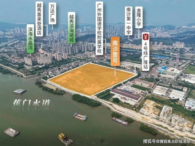 地段,永远是房地产价值的基石。对于南沙壹号而言,其选址之精妙,足以让任何一位资深地产专家为之赞叹。项目傲立于南沙明珠湾板块的核心腹地,具体位置位于环市大道西南侧、广隆涌东侧。这里不仅是南沙自贸区的心脏地带,更是粤港澳大湾区地理几何中心的黄金节点。站在南沙壹号的窗前,南向一线直面壮阔的蕉门水道,江水滔滔,波光粼粼,每天清晨推开窗,迎面而来的是带着湿润水汽的江风和无与伦比的江景画卷。这种“推窗即见江,出门即入画”的居住体验,在广州乃至整个大湾区都极为稀缺,是真正的不可再生资源。
