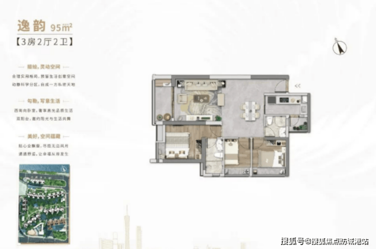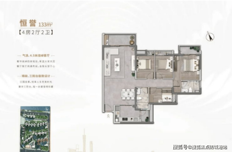豪华的产品配置:全南向户型设计,最大限度地利用自然光线和景观资源。