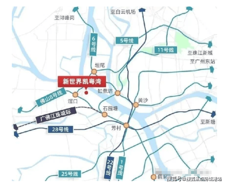 新世界凯粤湾距离地铁5号线首发站滘口站约500米,步行即可轻松抵达。通过地铁5号线,您可以直达珠江新城等地,无需换乘。此外,6号线坦尾站和正在建设中的11号线石围塘站也近在咫尺,方便前往北京路、环市东等繁华商圈。未来,广州4条地铁(1、11、28、22号线)交汇落成白鹅潭站,将联通佛山、深圳、东莞等湾区城市,进一步提升区域交通便利性。