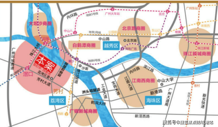 优越的地理位置:临近白鹅潭CBD,周围有多个高端商业体和文化地标。