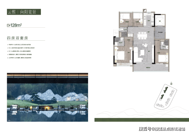 高品质居住体验:全南向板式设计,专梯专户,保证了住户的私密性和舒适度。