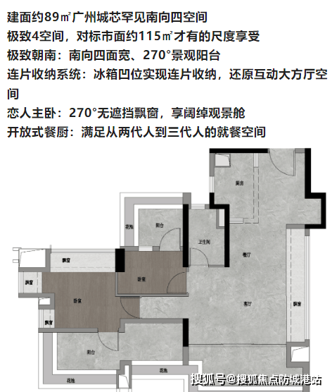 四、户型亮点:88-118㎡全南向高赠户型,刚需也享四房尺度