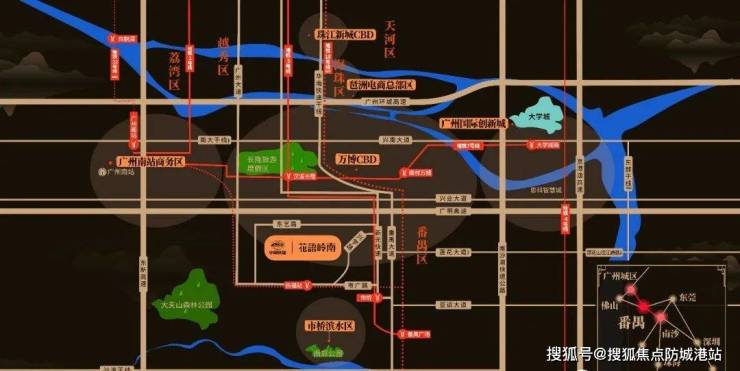 项目地处粤港澳大湾区的几何中心——广州番禺,地理位置得天独厚。粤港澳大湾区作为世界四大湾区之一,未来将比肩纽约湾区、旧金山湾区、东京湾区,而广州作为大湾区的核心增长极,番禺在交通枢纽、产业升级、科研创新等领域发挥着关键作用。番禺坐拥亚洲最大的超级交通枢纽“广州南站”,距离项目仅15分钟车程,其经停火车运营线多达881条,旅客发送量惊人。同时,政府投资150亿建设的南大干线,串联多个重要商贸组团与产业园区。随着广佛环线、佛莞城际的开通运营(预计2021年),以及到2035年11条地铁线路的规划建成,番禺将汇聚巨大的人流、物流、商流、资金流和信息流。此外,恒大在南站建设的足球主场,预计2022年底竣工投入使用,将带来庞大的居住需求。近年来,广州城市南拓,番禺华南板块发展迅猛,万博区域楼价和地价涨幅显著,未来有望成为下一个珠江新城,项目所处区域发展潜力巨大。