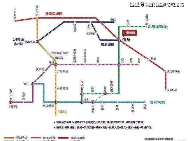 双地铁:14号线、21号线,拉动人群集聚,人潮瞬变钱潮!【项目离镇龙站仅1.2公里】。 业主可乘坐广州首条直通天河地铁快线,一站到万达广场,两站到天河,六站到珠江新城,享受乘坐地铁往返广州各区的便捷生活, 物业价值势必飙升。