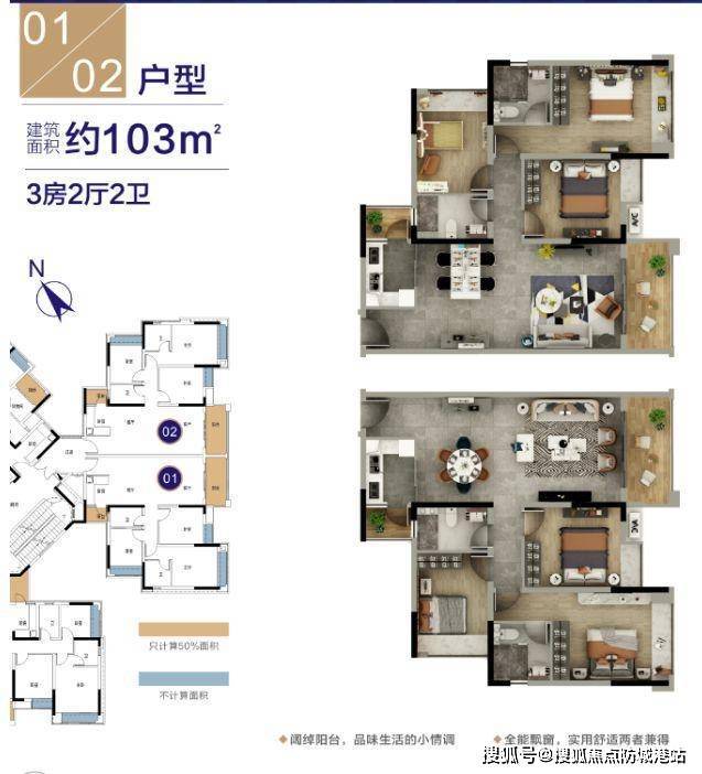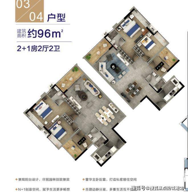 3 房两厅两卫 + 96 方 + 东北 / 西北向