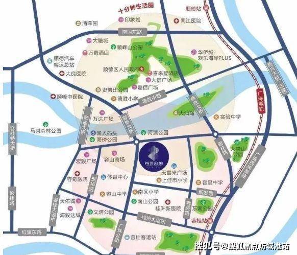 其地段优势显著,地处顺德黄金中轴 105 国道旁,紧邻容桂中心城区繁华地带,承接容桂产业核心区的居住需求辐射,备受投资者及居住人群关注。位于大良与容桂区域交通纽带之上,是集多种业态于一体的中心商住综合体,物业、商业及区域价值潜力巨大。周边商业配套成熟,十分钟生活圈内有天佑城、海骏达城等多个大型商业中心,万达广场也在建设中。医疗环境便利,直线距离 3km 内医疗资源丰富。交通更是四通八达,处于顺德 “黄金走廊” 105 国道中心地段,拥有 “一城轨・双地铁” 的多维立体交通路网,畅享大湾区红利,实现广佛生活一体化。