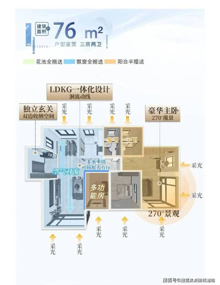 88㎡四房:实现了四空间两卫双开配景观阳台,为家庭成员提供更多的活动空间。