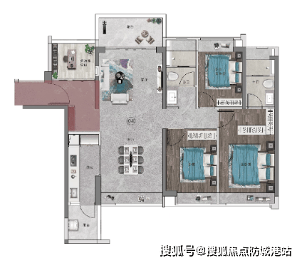 105㎡户型注重居住舒适度,动静分离的设计,让您在享受家庭欢聚时光的同时,也能拥有独立安静的休息空间。