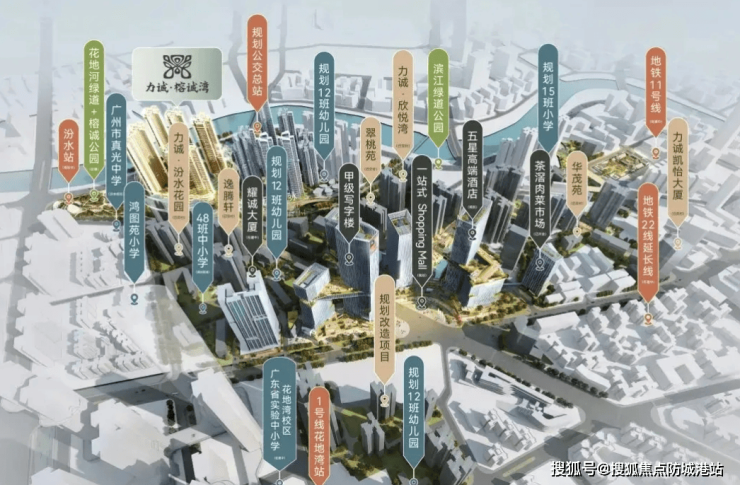 力诚榕诚湾位于广州市荔湾区,作为茶滘旧改项目的组成部分,它坐落在花地河以西、广州香料厂以南,北侧为高架桥,东邻汾水花园和真光中学,西侧紧邻花地河。这个项目旨在通过改造茶滘村,打造一个集高层住宅、商业办公楼以及酒店等多种业态于一体的综合性社区。