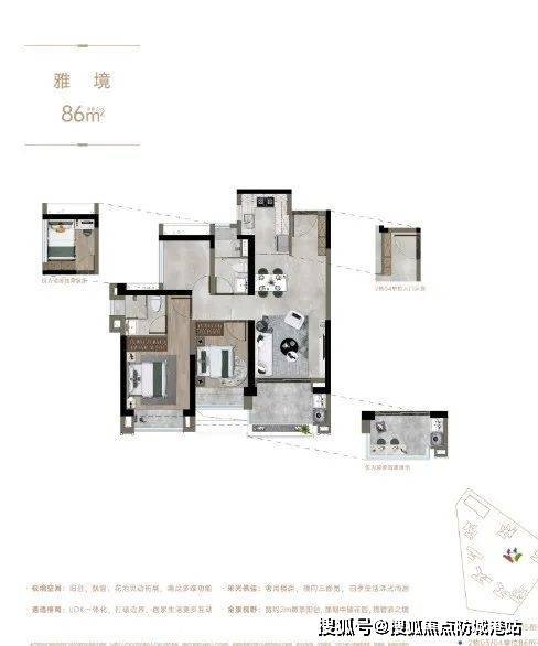 生态配套:小区绿化率高达47%,包含6大主题园林,连通双公园,东门即7000平方米的大榕公园(在建),南门则有规划中的1.2万平方米滨江生态公园。