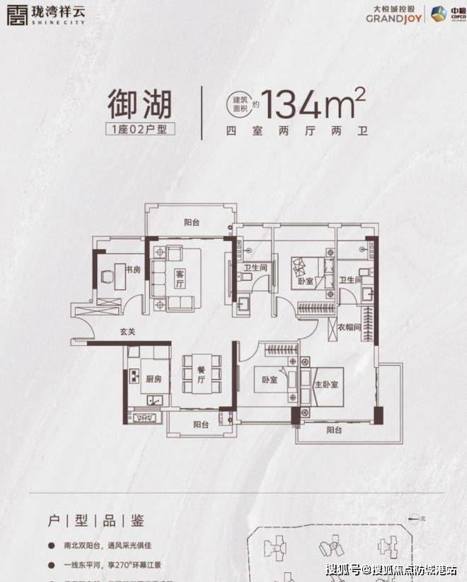 134㎡户型同样是南北双阳台设计,1 座的该户型更是拥有几乎整个奇槎最好的望江望公园景观,独特的景观资源为居住者带来无与伦比的视觉享受。主卧外飘的转角阳台,不仅增加了空间感,还让居住者能多角度欣赏周边美景,是较为特别的设计。宽敞的客厅、餐厅与阳台相连,形成开阔的空间格局,适合举办家庭聚会或招待亲朋好友。四个卧室布局合理,保证了家庭成员的生活空间。该户型无论是景观资源还是空间设计,都为追求高品质生活的购房者提供了理想之选,当然,高层能望半月岛的该户型价格相对最贵,但对于注重居住体验的人来说,物有所值。