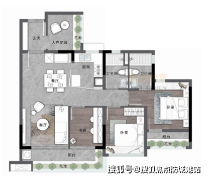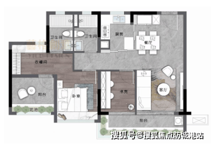 约78㎡ 2+1房2厅2卫:四开间采光,全明通透户型,LDKG一体化客餐厨灵动设计,客厅&次卧空间随心组合,约5.5米双面宽阳台,豪宅配置。