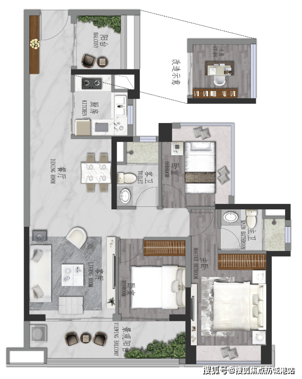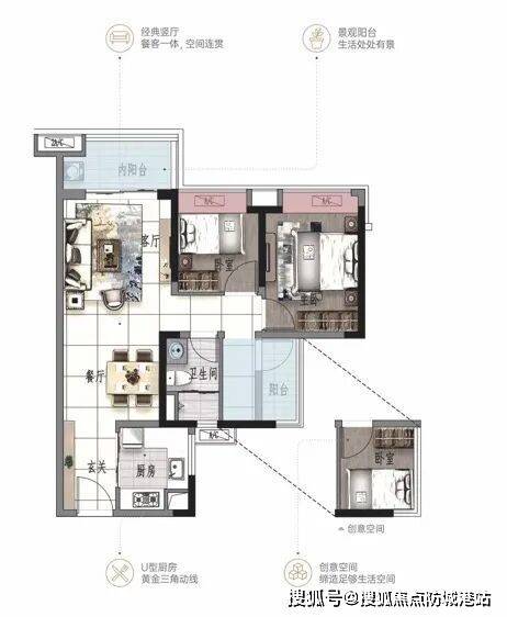 ③景观大阳台连通次卧