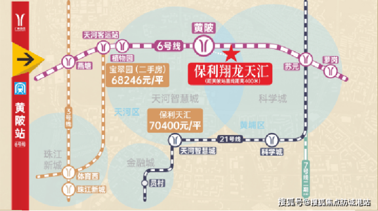 ✔3站换乘21号线,6站换成3号线,通达广州各区