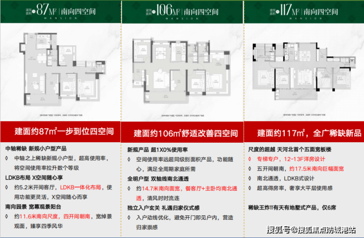 产品创新:88㎡四房四开间朝南,117㎡板楼五开间朝南,南北通透,冬季日均日照达6小时;