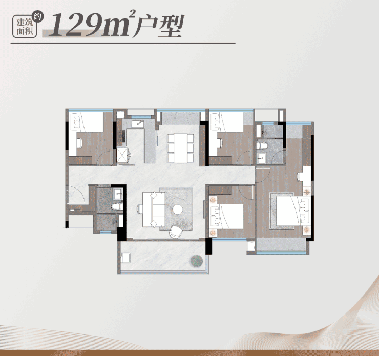 LDKB 一体化:客厅(L)、餐厅(D)、厨房(K)、阳台(B)全打开,形成通透公区,增强家庭互动,同时最大化采光与通风;