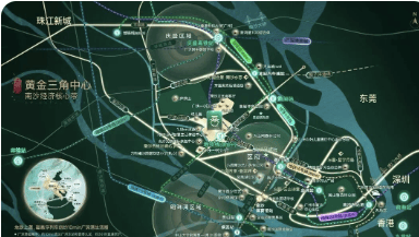项目雄踞广州南沙区黄阁板块,北接庆盛枢纽,南连明珠湾CBD,东临南沙区政府,西靠珠江出海口。根据《广州2025-2030国土空间规划》,南沙定位为“国际科创枢纽”,项目周边3公里内集聚南沙枢纽、庆盛枢纽双TOD,未来通过黄阁东枢纽可快速接驳中山、东莞,形成“30分钟大湾区生活圈”。