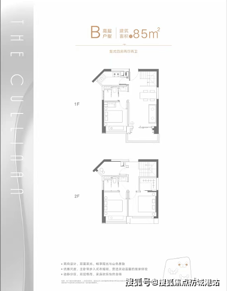 复式洋房:总建筑面积约10.6万㎡,包括4栋高层复式洋房,建面从85-120㎡不等,采用错式排布设计,全南向布局,确保良好的通风采光条件,并且带精装交楼。