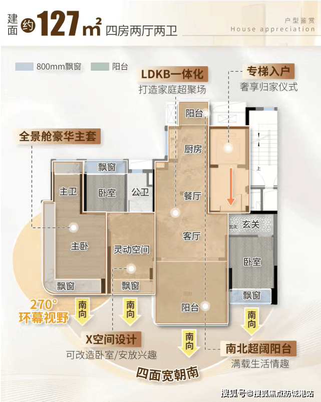 户型鉴赏:127㎡四面朝南神户型与170㎡全景舱大宅,演绎极致空间美学