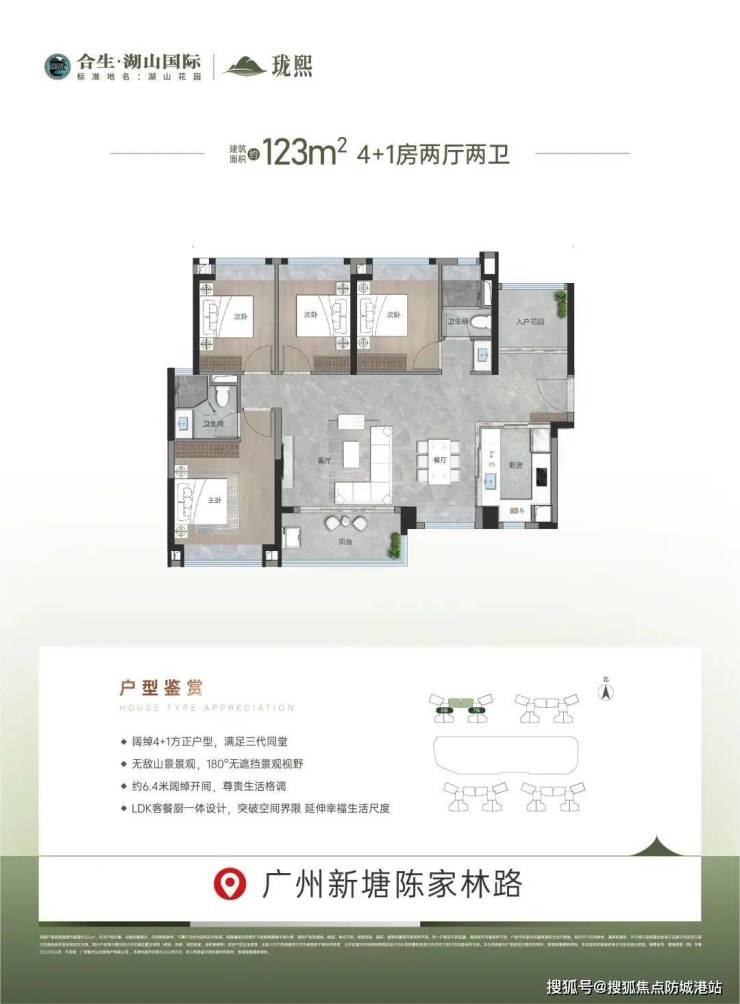 123方 4+1房户型:无敌山景景观,180°无遮挡视野,LDK客餐厨一体设计。