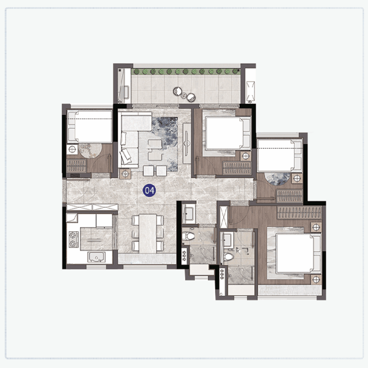 而建面约127㎡户型,在设计上,可谓将这种优势拉到极致。