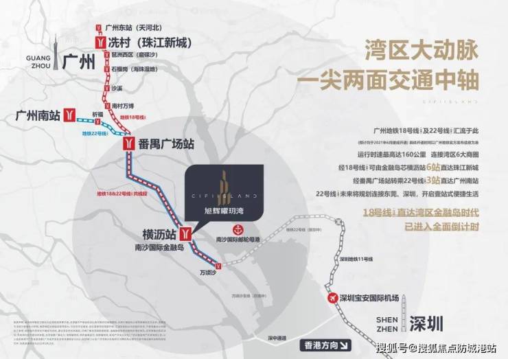 曜玥湾所在的南沙正处于政策红利集中释放期,《广州南沙深化面向世界的粤港澳全面合作总体方案》的持续推进,将推动区域功能由传统产业转向现代服务、金融、科技等高端业态。项目紧邻金融岛产业核心区,未来将承接大量总部企业与国际资本资源进驻,带动区域价值跃升。开发商旭辉与恒基具备丰富的大型高端项目打造经验,品牌信用稳定,产品溢价能力强。此外,南沙作为广州副中心定位逐步明确,未来城市空间格局将向南发展,曜玥湾正处于城市扩容与价值重构的黄金节点,具备长期持有与稳定升值的双重保障。
