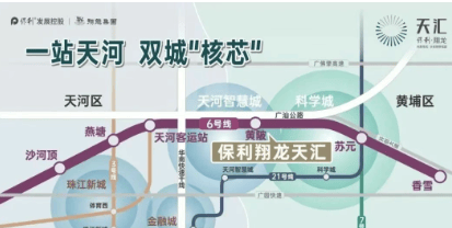 保利翔龙天汇占据着得天独厚的地理位置,坐落于科学城和智慧城这两台广州经济发展强力引擎的交汇处,与二者仅有 5 公里距离。科学城和智慧城分别作为天河、黄埔智造中心的前沿阵地,各自拥有超 3200 家和 1300 家科创企业入驻,为区域发展注入源源不断的动力。保利翔龙天汇不仅坐享产业带动城市配套与土地价值提升的红利,还直接承接天河和黄埔大量高净值人群居住需求的外溢。