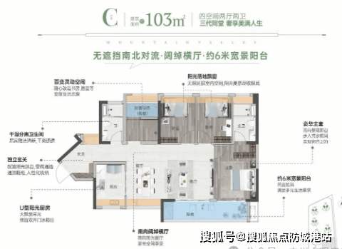 多样化户型选择:在售户型包括85平方米三房两厅两卫、98平方米四房两厅两卫、103平方米四房两厅两卫等多种选择,每个户型都充分考虑了人性化需求,如U型大厨房、超宽阳台、主卧落地凸窗设计等,保证了居家生活的舒适度。