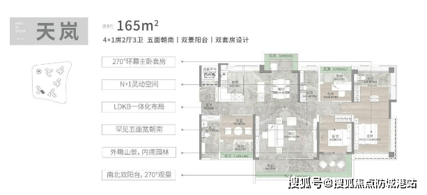如果说地段和教育是文津府的“外功”,那户型就是它的“内功心法”。项目主打108-165㎡三至四房,最大亮点是得房率接近100%——在普遍得房率仅70%-80%的广州市场,这几乎颠覆认知。所有户型均采用48°错落布局,实现零对视、全景观;层高达3.1米,远超市场平均;次卧标配全景落地窗,采光通风极佳。108㎡做到四开间朝南+5.9米大方厅;140㎡南向面宽达15.7米;165㎡更是双主套+9米L型阳台+三面望山。LDKB一体化、独立玄关、双阳台、L型衣帽间等细节,处处体现人性化考量。尤其在当前“改善当道”的市场趋势下,文津府以超高实用率+奢阔空间感,精准击中改善客群痛点。