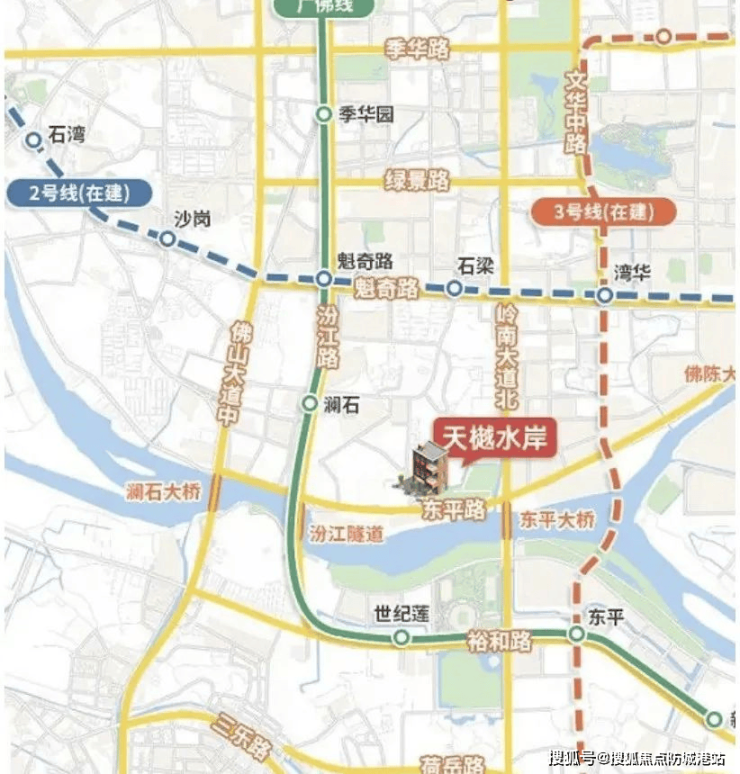 天樾水岸构建全维立体交通网络,畅达大湾区各地。项目周边依托 4 横 4 纵完善路网,4 条东西向道路(东平路、魁奇路、绿景路、季华路)与 4 条南北向道路(华远东路、岭南大道、汾江路、佛山大道)交织,轻松抵达城市各区域。轨道交通优势显著,周边有广佛线,佛山地铁 2、3 号线和佛穗莞城际 3 条线路,7 个地铁站环绕,便捷接驳广佛核心板块。往北快速连通千灯湖,往南达佛山新城、广州南站,融入大湾区 1 小时生活圈。这种 “主干道 + 多地铁” 的全维交通,结合稀缺江景资源,强化项目作为顶级城市收藏品的居住便利性与资产价值。