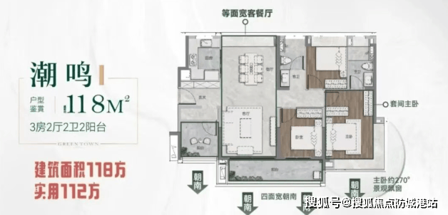 目前在售的户型面积包括99平方米、118平方米和140平方米,均为四房设计。这些户型空间利用率高,使用率约为90%-93%,且大部分户型朝向良好,能够充分利用自然光线和景观资源。