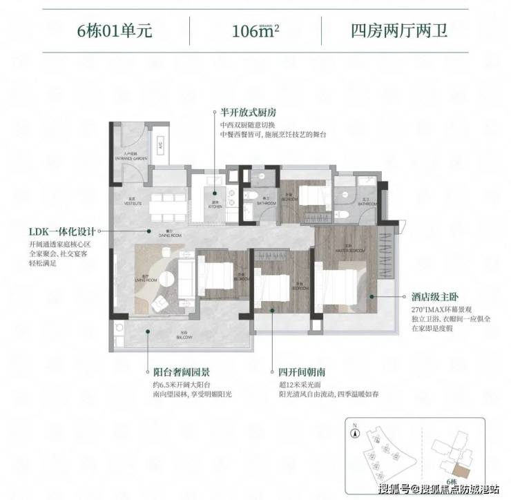 A:88㎡三房得房率超110%,6.2米阳台可改造为第四间房;138㎡四房配备270°环幕阳台,主卧270°景观窗。