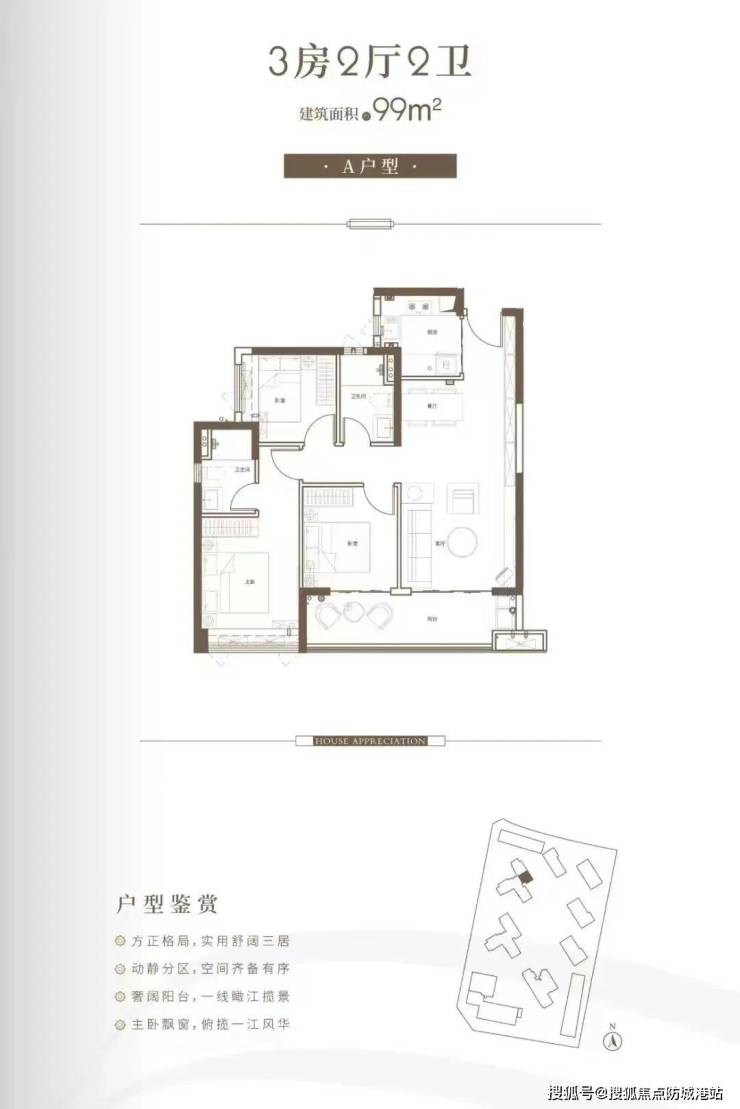 其中,99平方米户型是整栋楼唯一的小面积单位,朝北望江设计,主卧、客房和客厅都能欣赏到江景,户型实用且合理。如果对朝向不是太在意,这个低门槛户型是一个不错的选择。