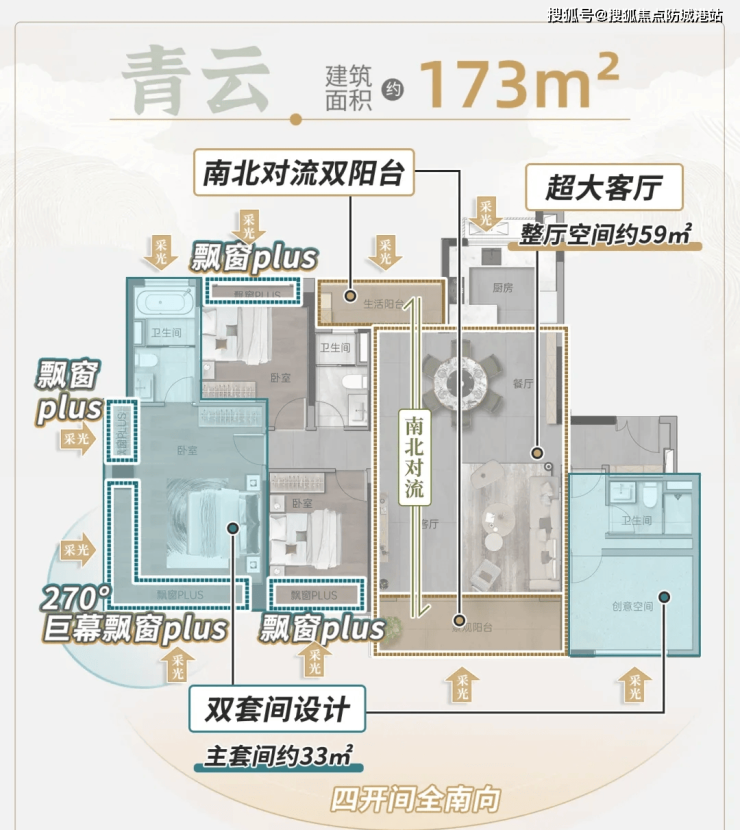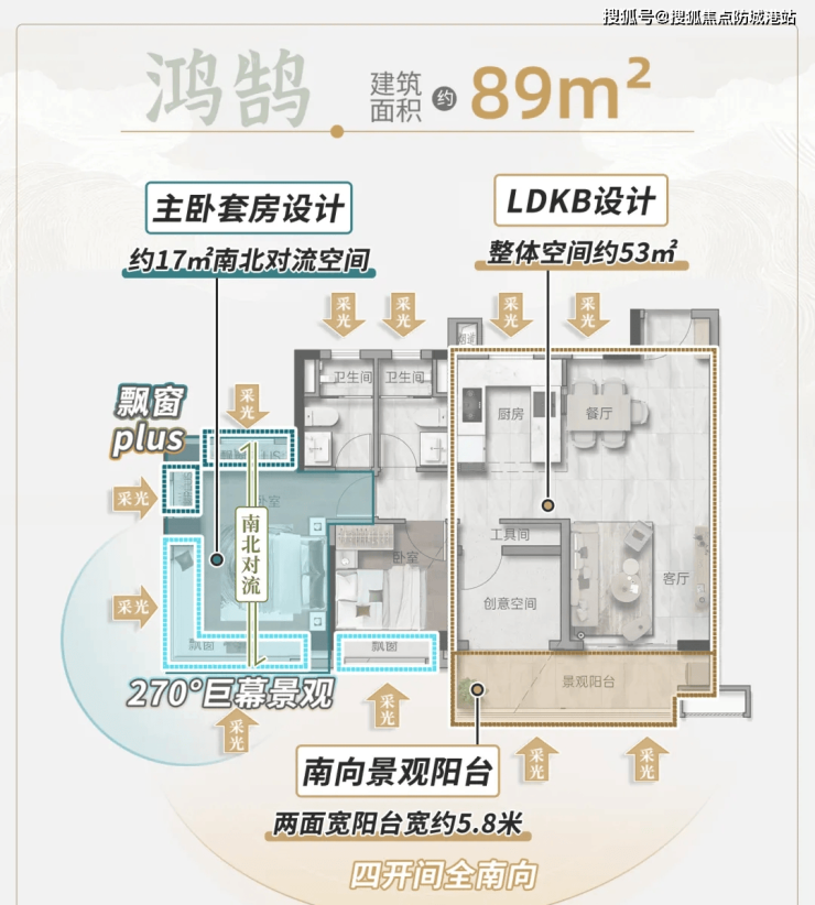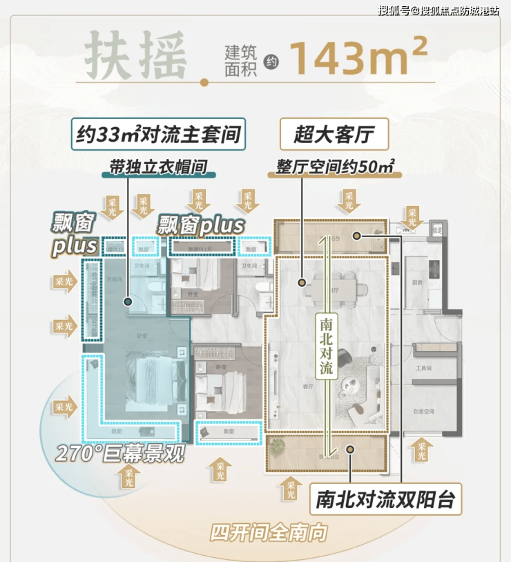 区域最卷户型,全户型主卧270°景观飘窗设计