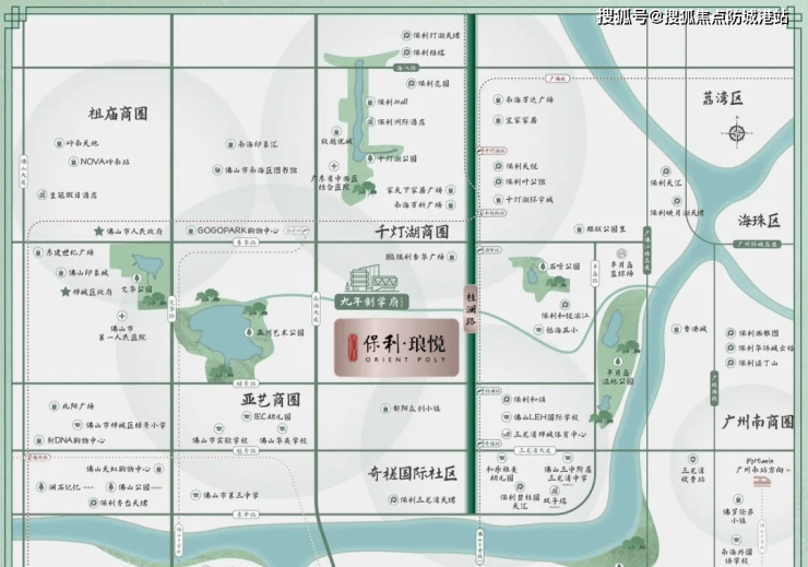 约15分钟畅达千灯湖商圈,保利水城、保利西街、致越优城、宜家家居、千灯湖寰宇城、南海万达广场等16个核心商场