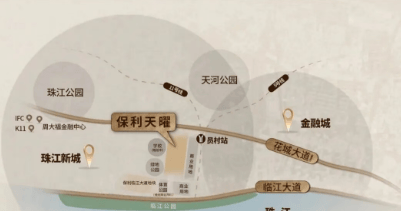 保利·天曜地理位置优越,紧邻花城大道与临江大道,双主干道贯穿珠江新城与金融城,形成城市动脉。项目附近有地铁5号线员村站,三站即可抵达珠江新城站,11号线一站即达琶洲,便捷的交通网络让居民出行无忧。