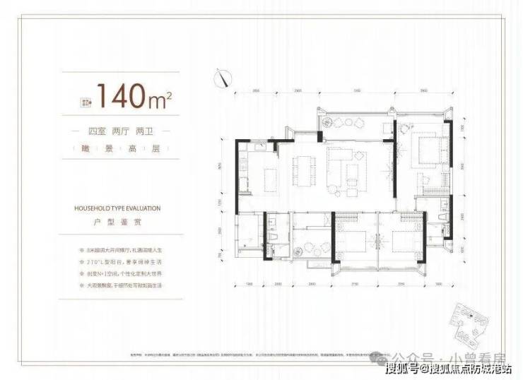 约140平方米及以上阔景户型: 该类户型通常采用大面宽、短进深的横厅设计,实现南北通透的对流格局。客厅、餐厅一体化,空间感开阔大气,兼具良好的景观视野与居住舒适度,是追求品质生活的终极改善之选。