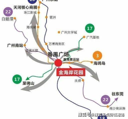 交通枢纽优势:尊处番禺客运站与番禺广场双 TOD,形成五轨交汇(3 号线 / 3 号线东延线 / 18 号线 / 22 号线 / 17 号线)的交通格局,且一横五纵大动脉畅通四方,为居民提供了高效便捷的出行条件,轻松畅达城市各处。