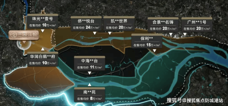 兰园江悦位于白鹅潭CBD核心区,是广州五大世界级商圈之一,地段优势明显。根据广州十四五商业发展规划,白鹅潭商务区将推动实施超过100个重点项目,总投资超三千亿元,未来将有著名企业入驻、三馆合一项目落成、广州首座万象城落户等,区域发展潜力巨大。项目紧邻珠江,距离江面仅90米,拥有约400米宽的江景,且是三江汇聚的位置,江景资源稀缺性不言而喻。在广州,江景豪宅历来具有较高的价值,如汇悦台、保利天悦等,兰园江悦的江景条件甚至优于部分标杆豪宅,其资产增值潜力巨大。此外,项目周边的交通、商业、教育等配套设施也在不断完善,随着白鹅潭商务区的发展,区域的土地价值将不断提升,从而带动项目房产价值的增长。