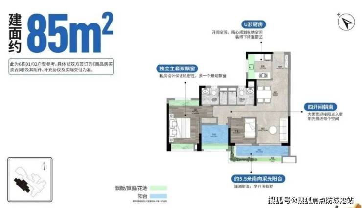 85平三房两卫,约5.5米景观阳台,西南西无遮挡,主套带双飘窗,四开间朝南