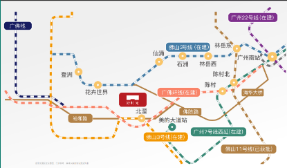 北滘美的卓越好时光坐落于北滘新城的黄金地段,是广佛TOD生态城核芯圈的重要组成部分。项目周边规划建设有两条地铁线路以及一条城轨,分别是佛山地铁3号线、广州地铁7号线和广佛环线城轨,极大提升了交通便捷度。多条快速路如美的大道、广佛江珠高速、东新高速等环绕项目,构建了高效立体交通网络。距离广州南站和佛山核心商圈车程短,极大便利广佛两地通勤及出行,适合双城工作生活需求人群。交通资源丰富且未来发展潜力巨大,是珠三角区域通勤价值突出的优质住宅项目。